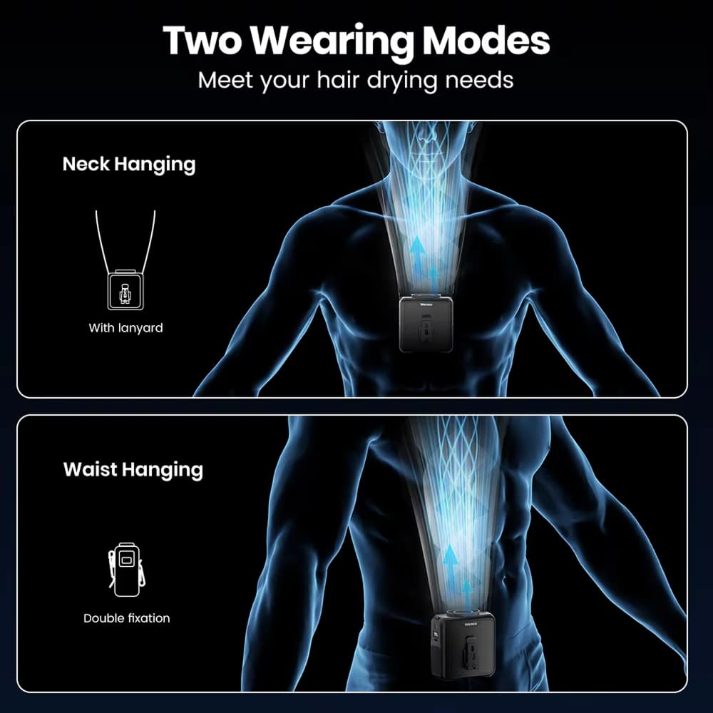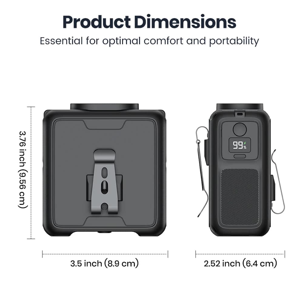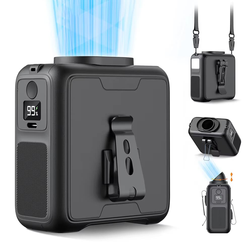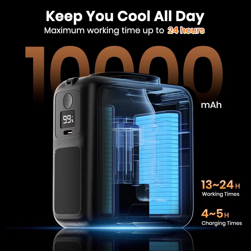 The Aeronimec Waist Clip Fan lasts up to 24 hours on low speed and 8 hours on max speed, thanks to its 10,000mAh rechargeable battery.