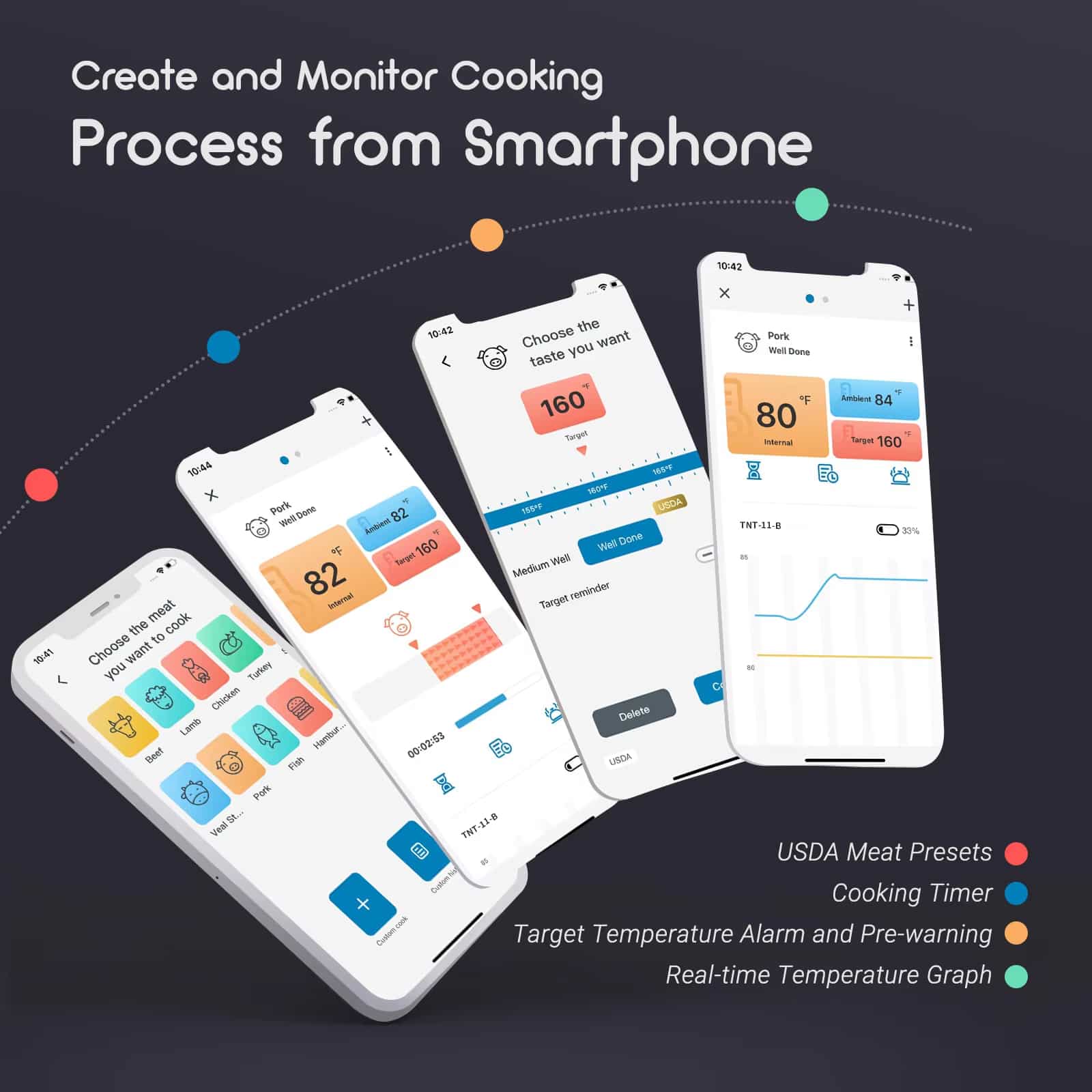 The Bluetooth 5.0 technology provides a reliable connection up to 98 feet away, allowing you to monitor your cooking from virtually anywhere in your home or outdoor area.