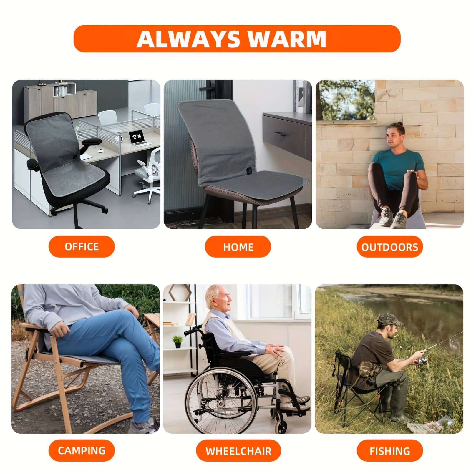Standard USB power compatibility means you can use HeatySit with power banks, car adapters, or computer ports, giving you warming comfort wherever life takes you.