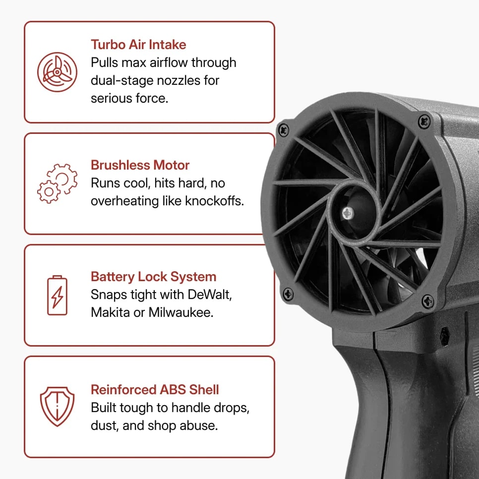 Compatible with major battery brands including Makita, Milwaukee, and Dewalt, the LeafyTex eliminates additional charger costs. This universal compatibility allows users to leverage existing tool investments while maintaining consistent, reliable performance.