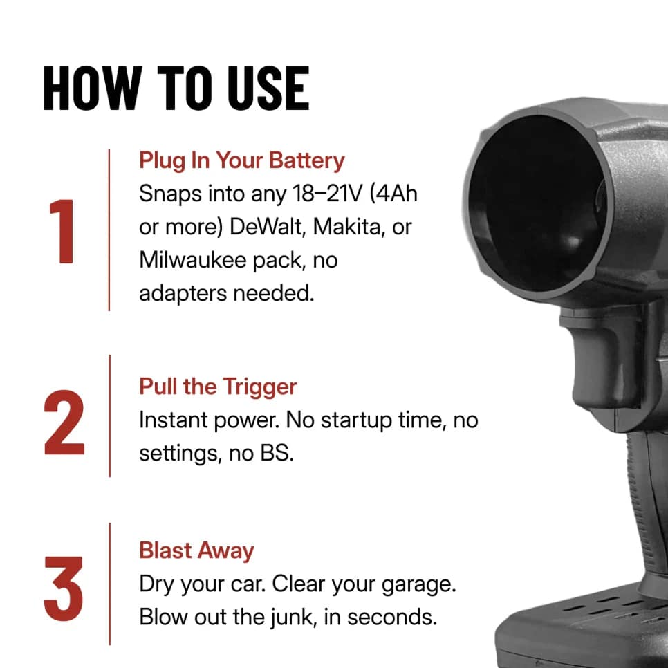 Designed for maximum convenience, the LeafyTex blower works seamlessly with your existing Makita, Milwaukee, or Dewalt 18V-21V batteries. This universal compatibility eliminates the need for additional chargers and leverages your current tool investment for cost-effective operation.