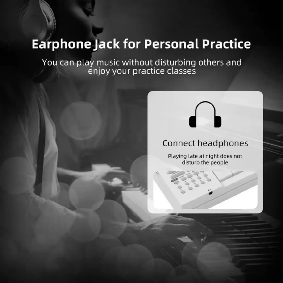 • Headphone Jack For Silent Practice