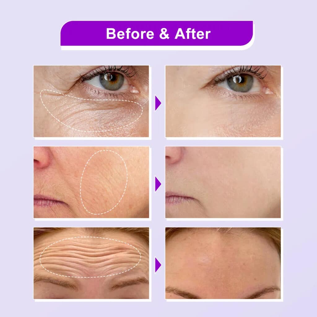 • Reduces crow’s feet by up to 36% and overall facial wrinkles by 88%