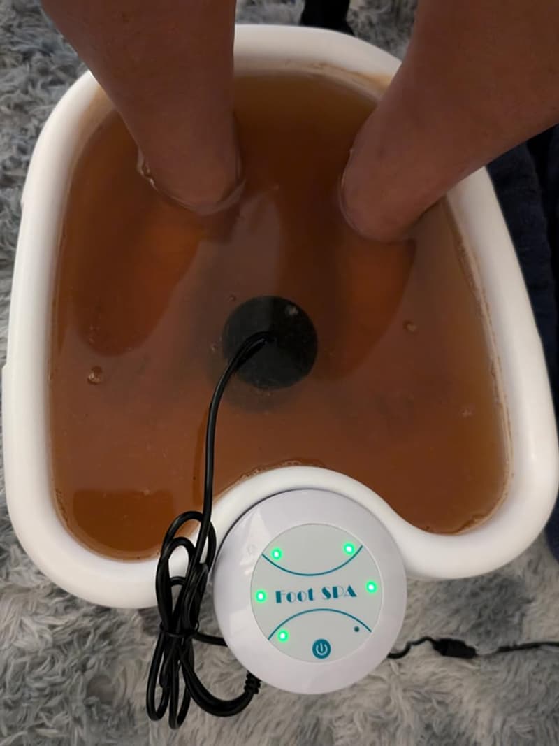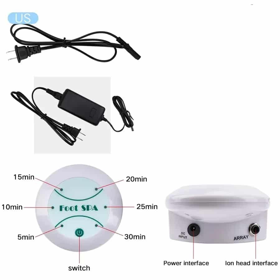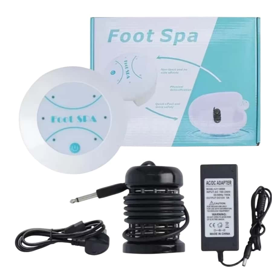 The system uses electromagnetic waves to ionize water molecules. When your feet are immersed, toxins are drawn out through your pores and react with the ionized water, creating visible color changes that indicate detoxification.