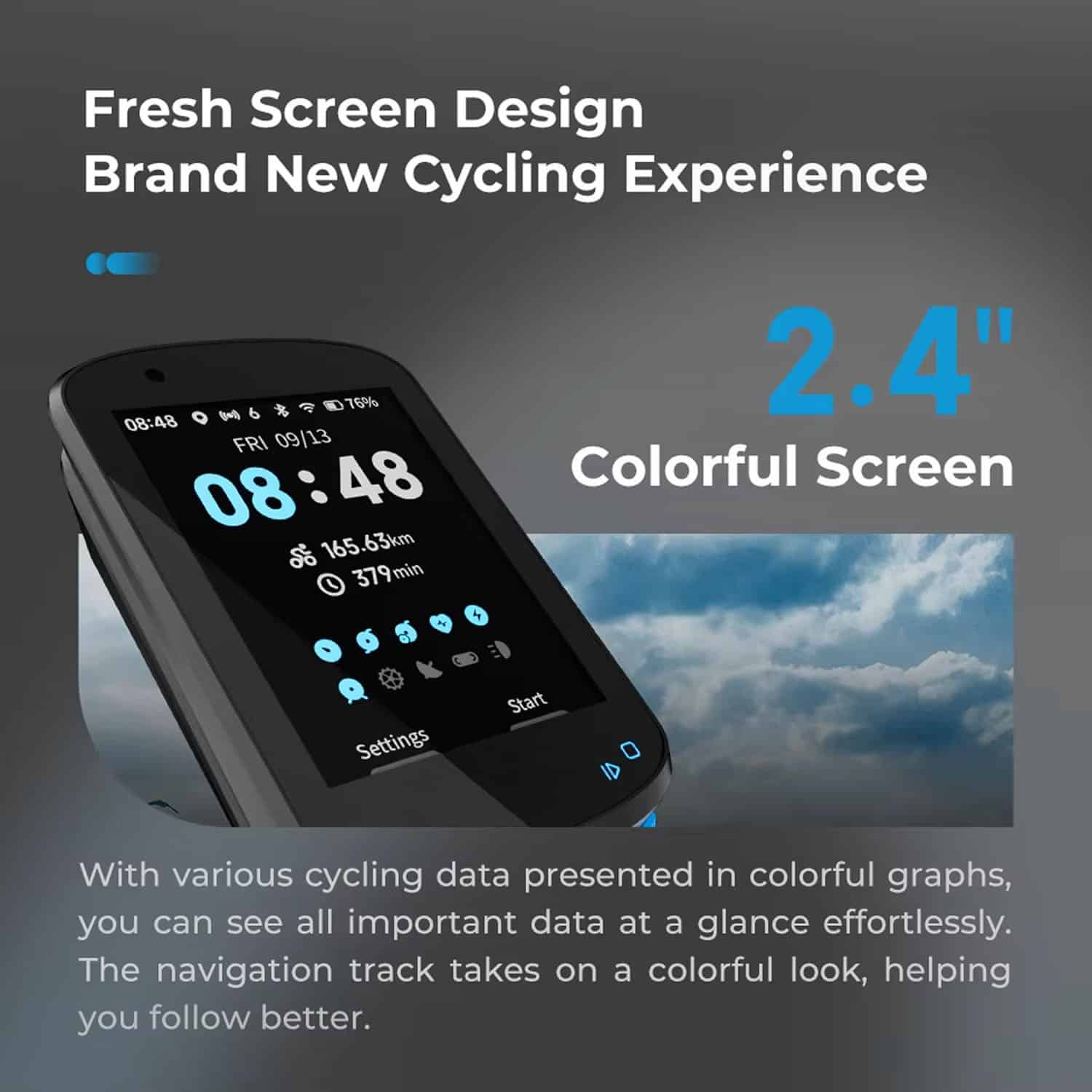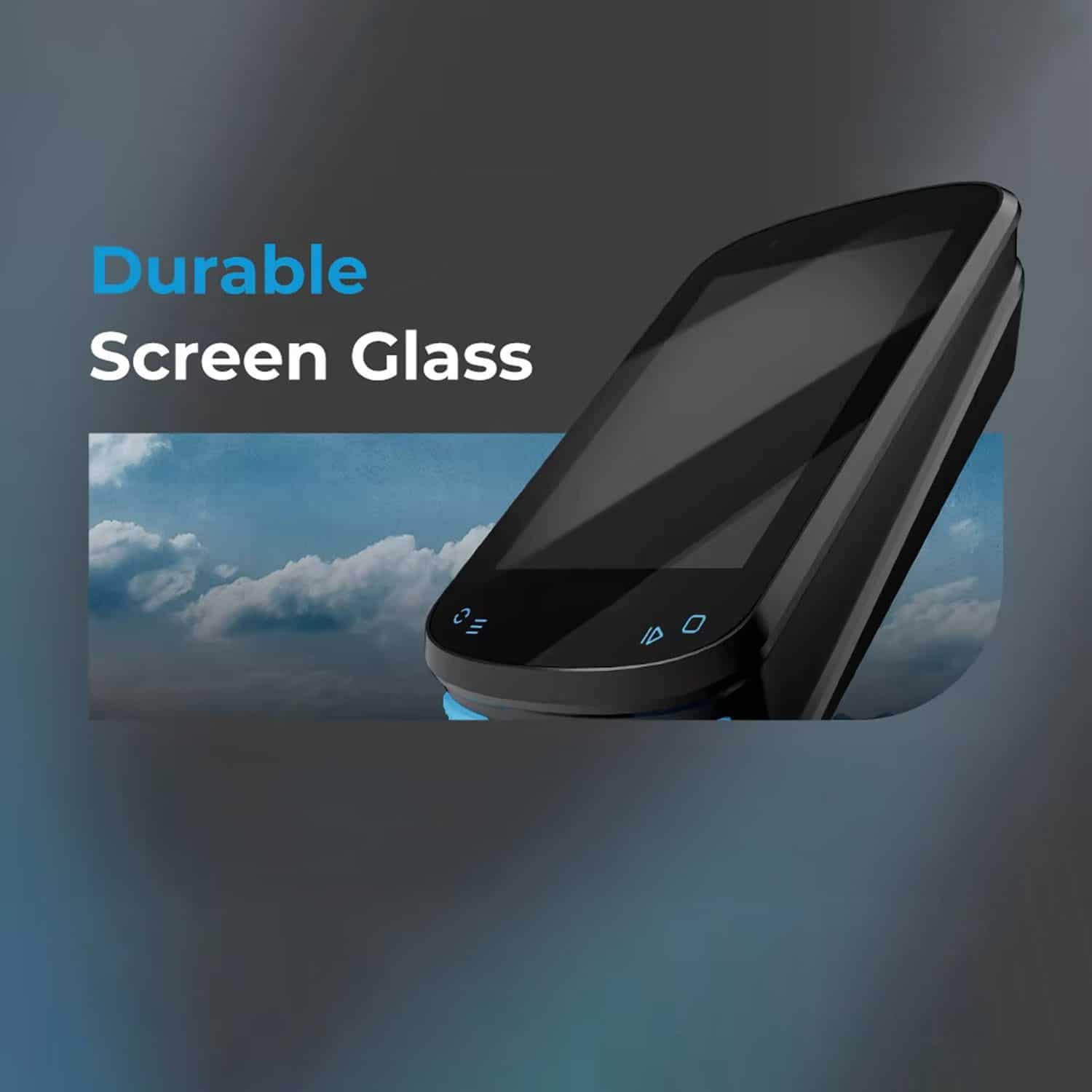 The 2.4” screen features Asahi glass, resistant to scratches from stones or knives, making it ideal for rugged rides.