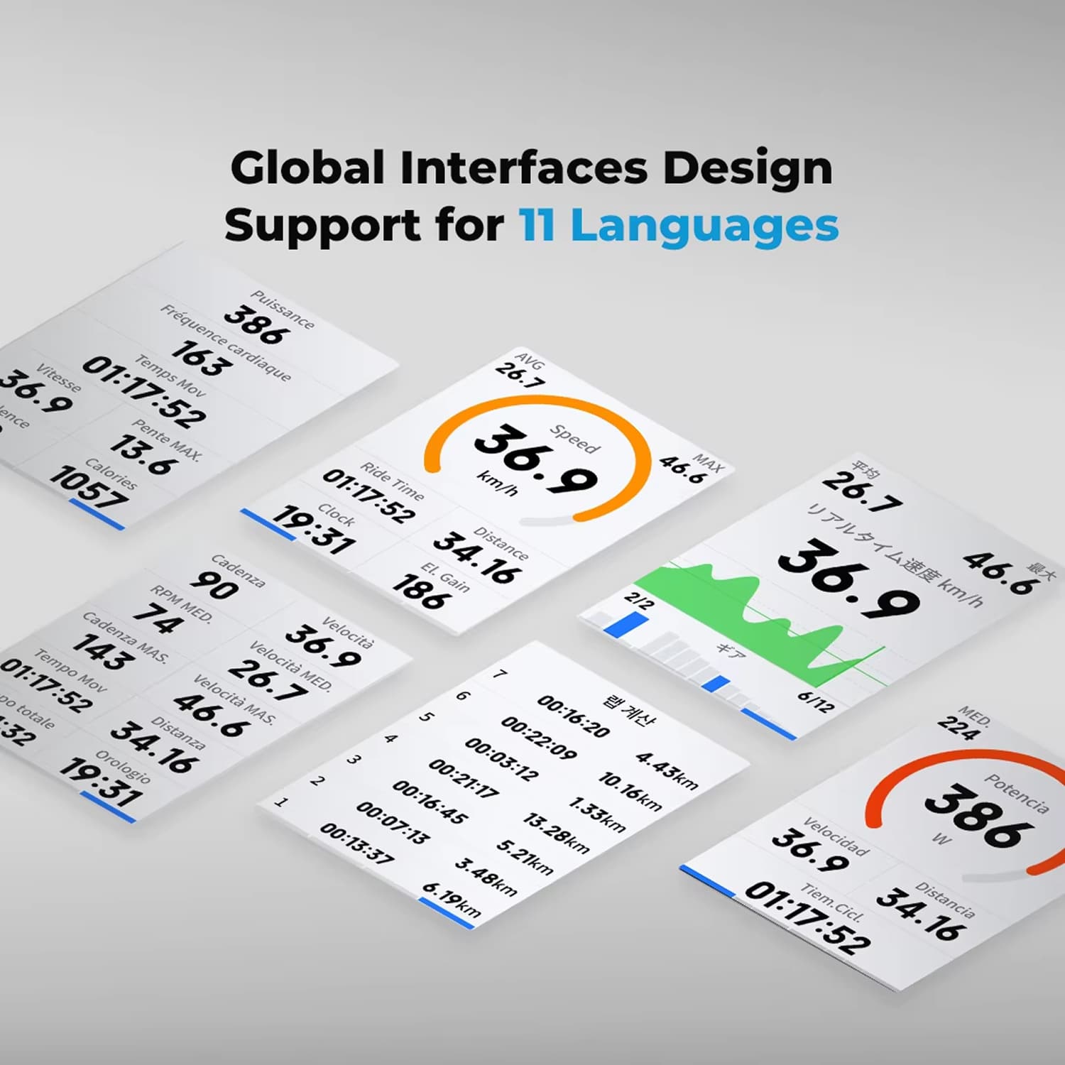 RidelyVo supports 11 languages, including English, Spanish, French, German, and more, catering to cyclists worldwide.