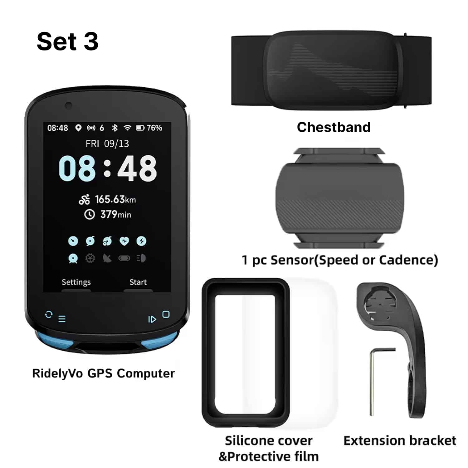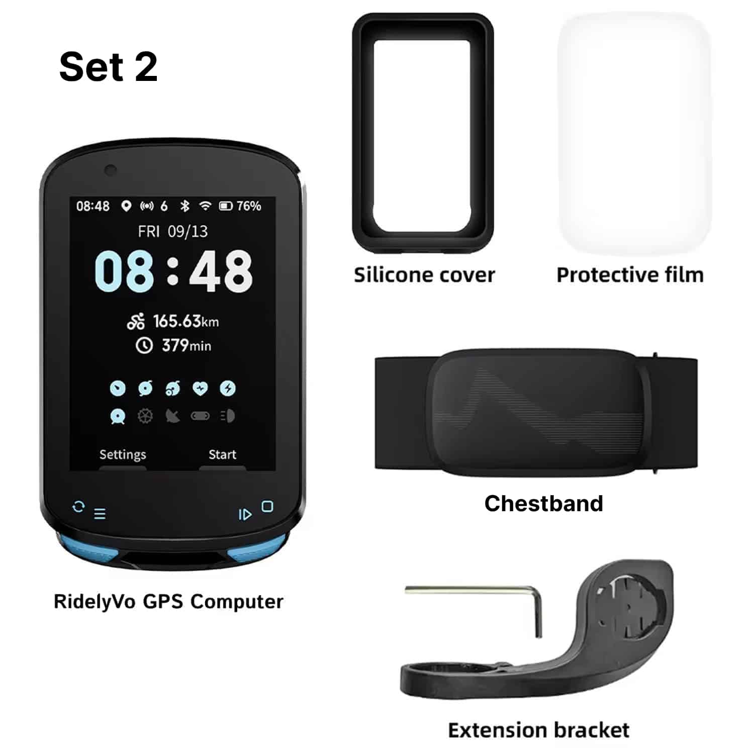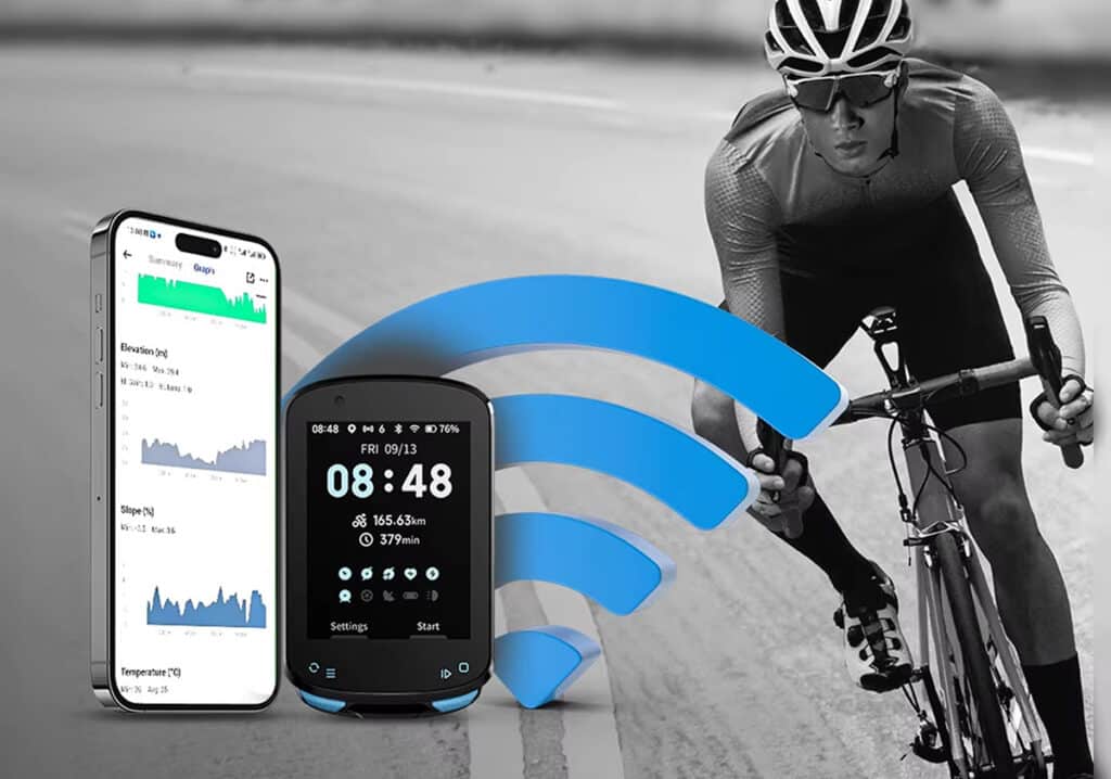 RidelyVo connects to 8 types of devices via Bluetooth and ANT+, including heart rate monitors, power meters, and cadence sensors.