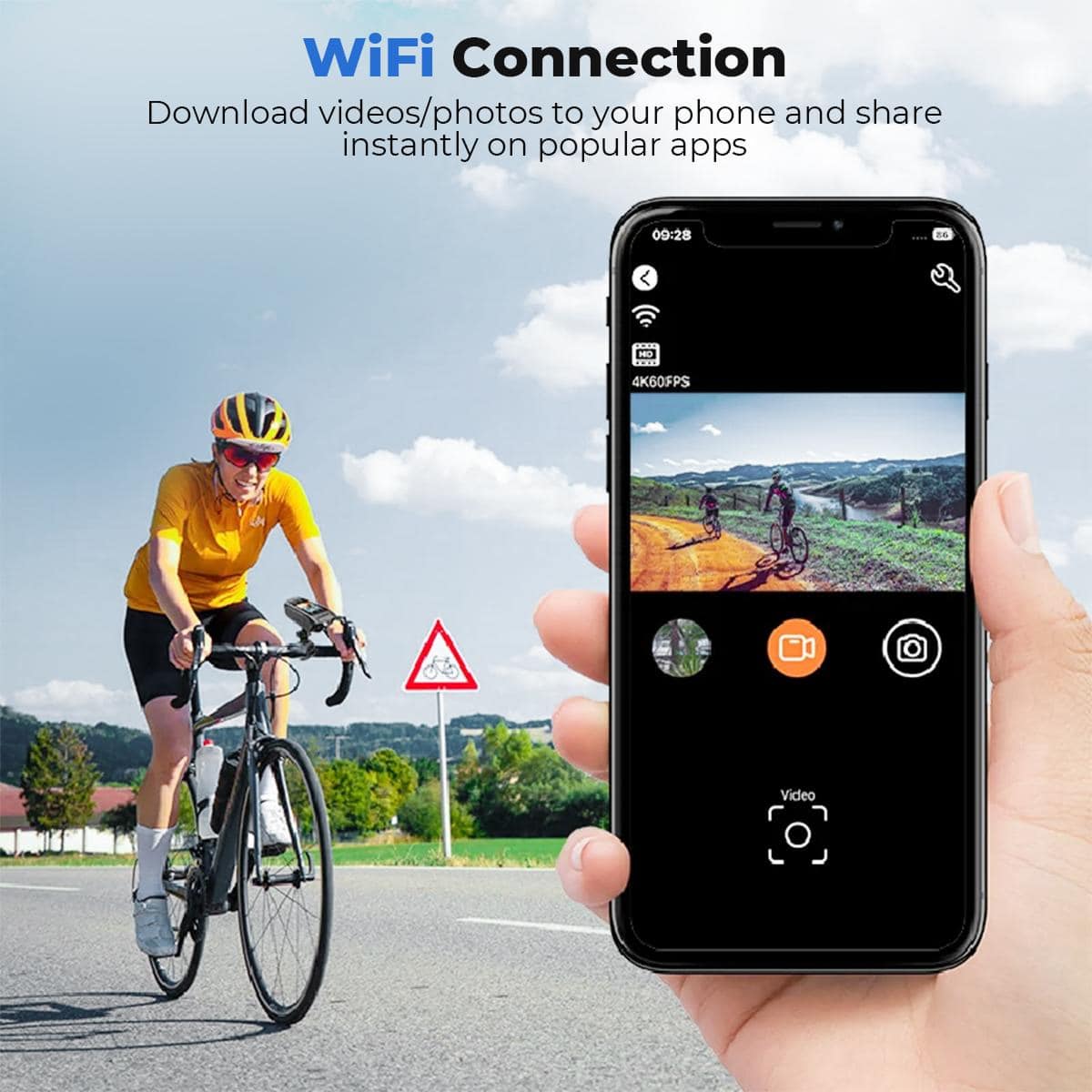Yes, the RoveCamet Bike Camera features WiFi connectivity, allowing you to share videos and photos instantly via popular apps like Instagram and Facebook.