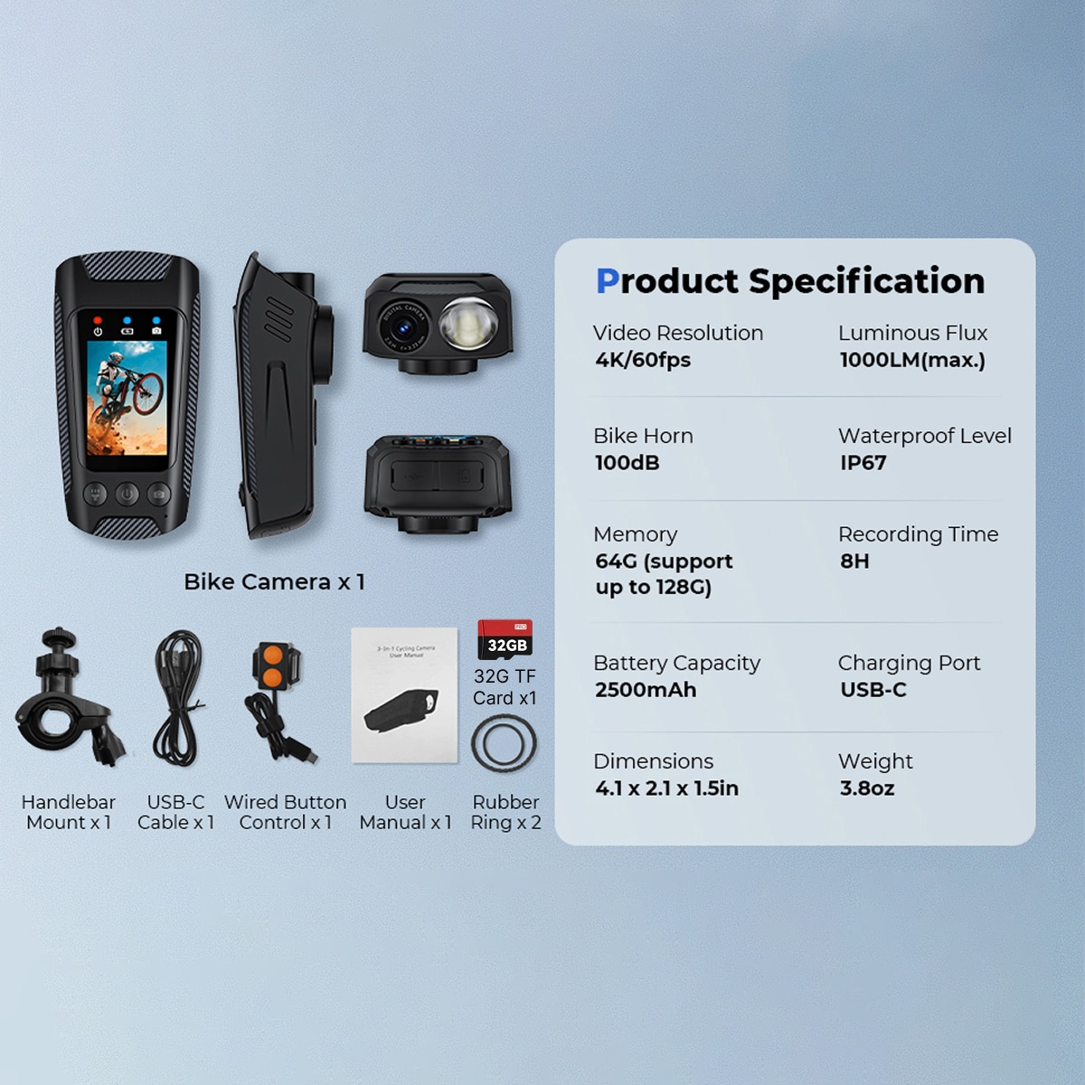 The RoveCamet Bike Camera's 2500mAh battery provides up to 8 hours of continuous recording, ensuring long-lasting performance on every ride.