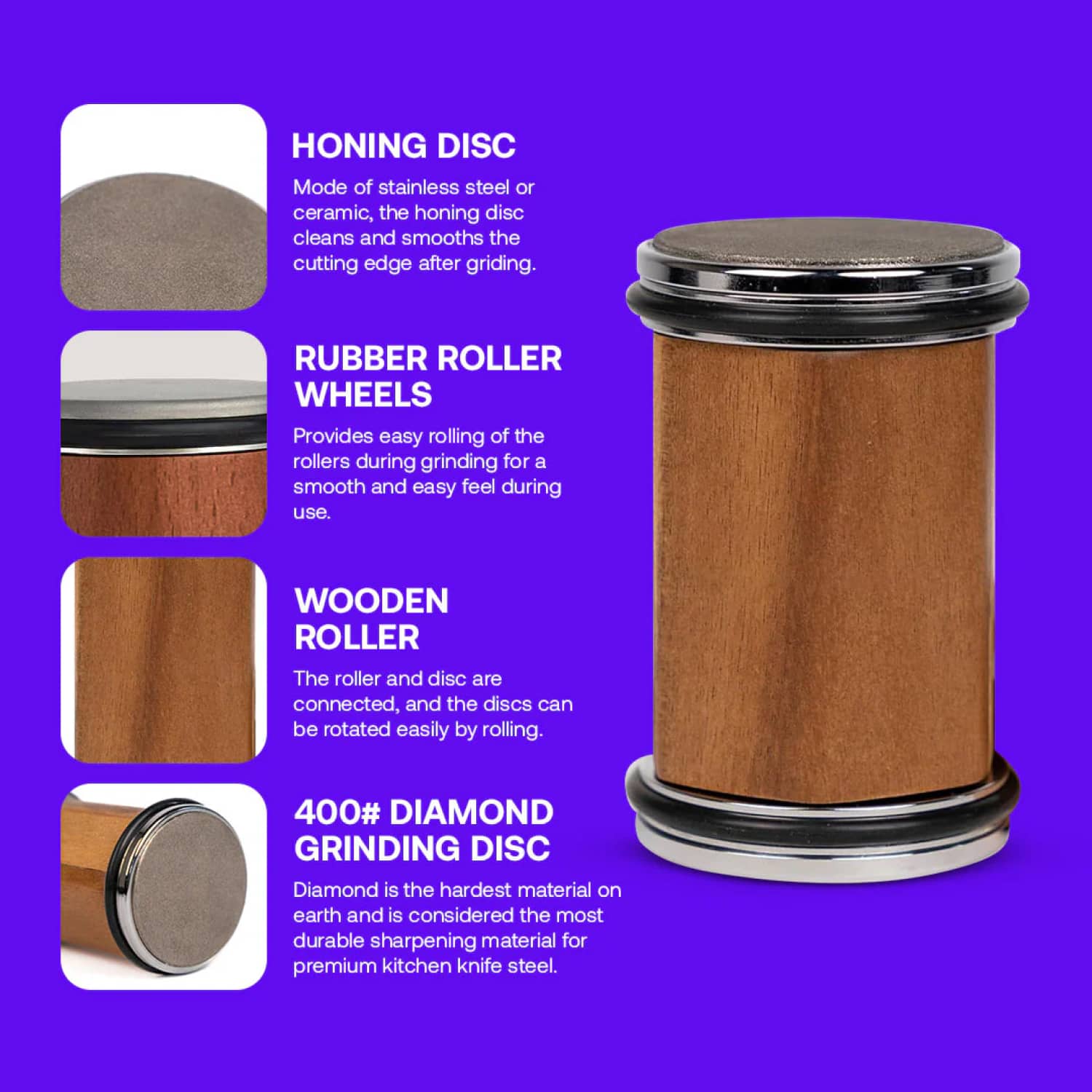 Simply wipe the Sharposty with a damp cloth after use. The premium materials require no special maintenance beyond keeping the rolling mechanism free from metal particles and debris accumulation.