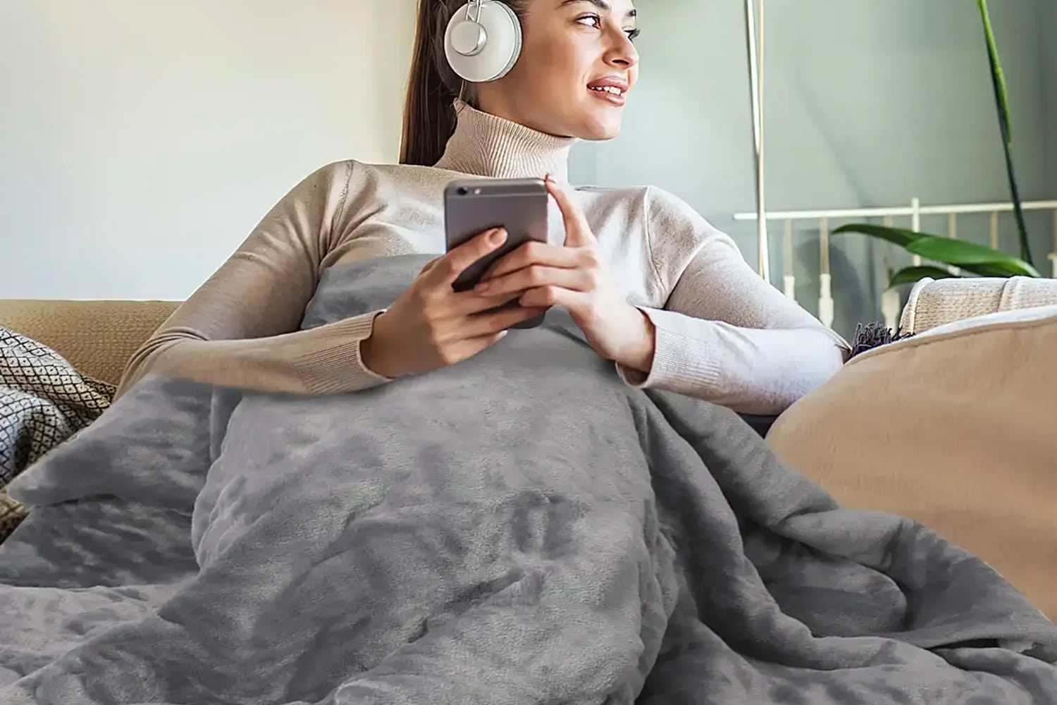 The SnuZapyo Heated Throw Blanket is available in two elegant color options: sophisticated dark gray and modern silver.