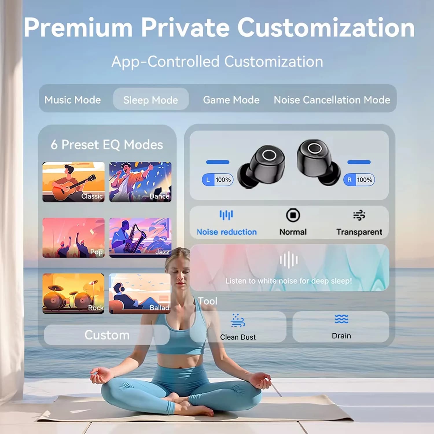 Use the dedicated mobile app to instantly switch between music, sleep, game, and noise cancellation modes. Each mode optimizes audio settings automatically. You can also customize controls through the app to switch modes directly from the earbuds.