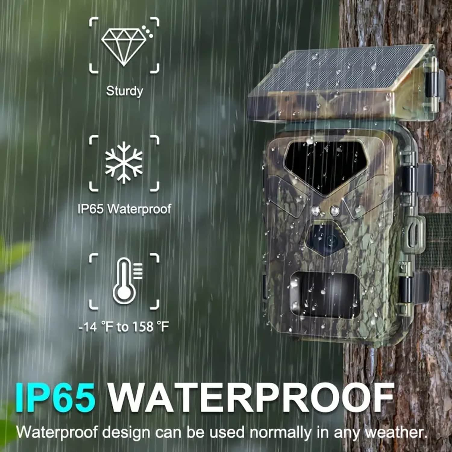 The SolCamark is built to last with an IP65 waterproof rating, ensuring durability in rain, snow, and other harsh weather conditions.