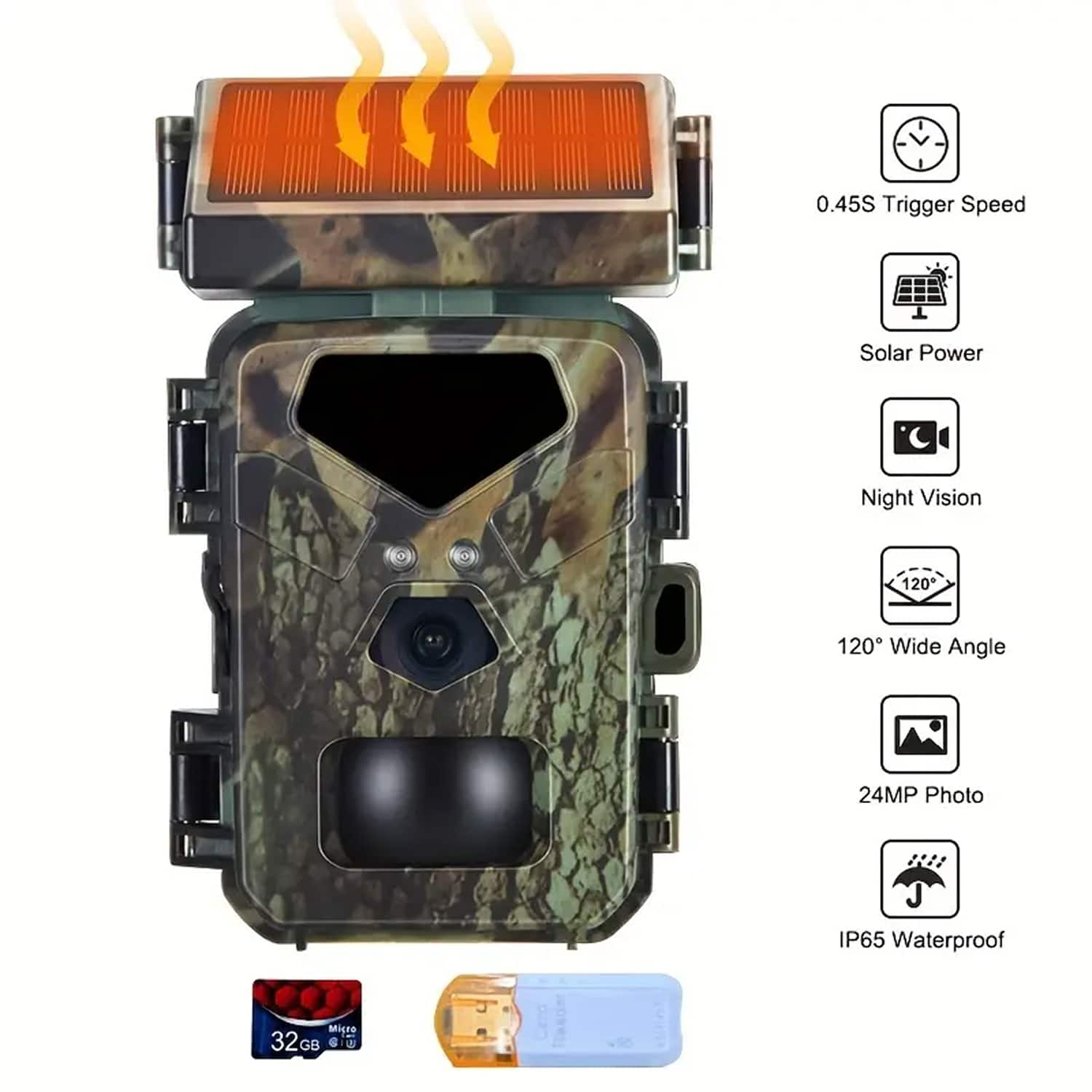 The SolCamark offers super night vision up to 65ft (20 meters) with its 850nm infrared LEDs, capturing clear images even in complete darkness.