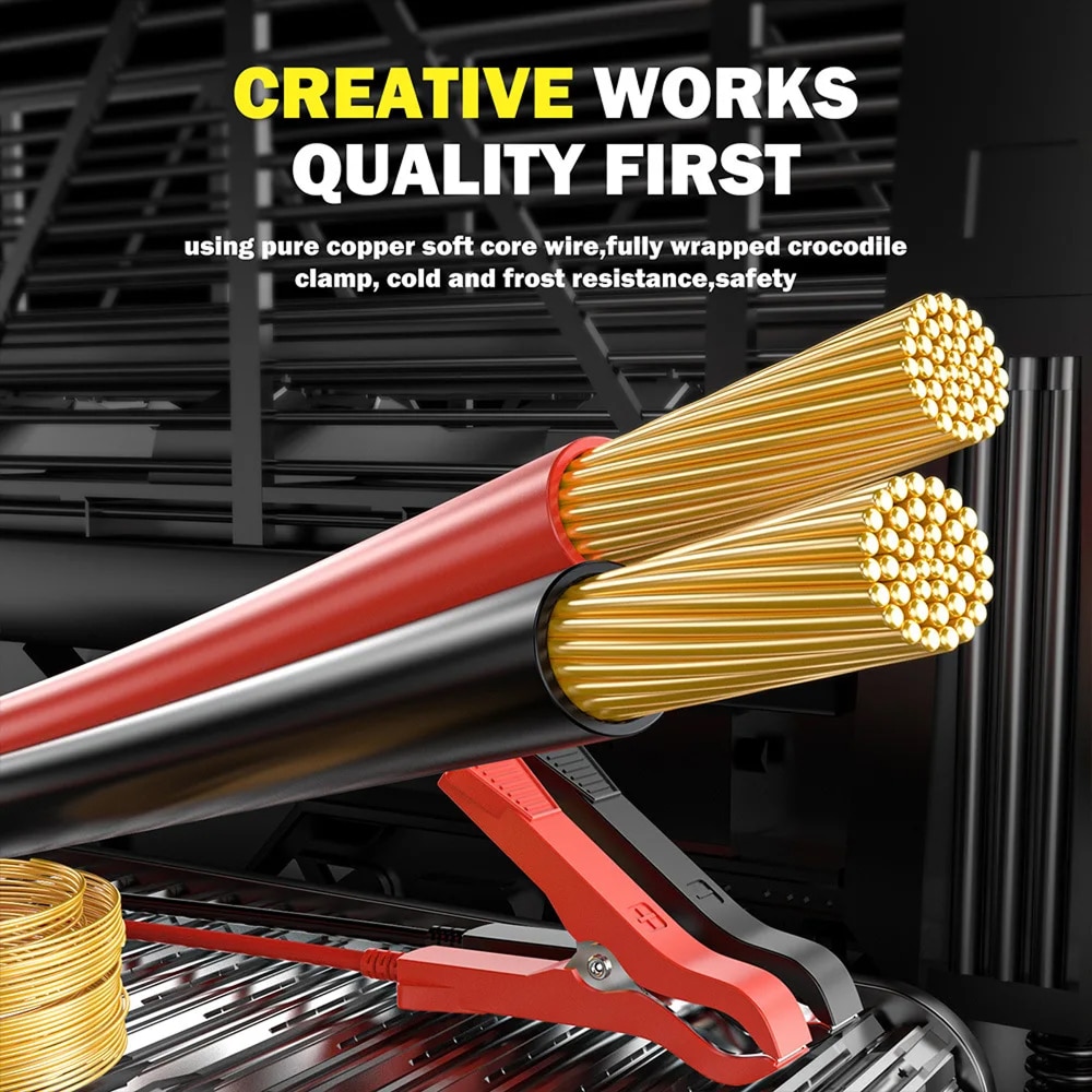 Built-in protection against reverse polarity, sparks, overcharging, over-current, short-circuits, and overheating ensures complete safety. The system automatically shuts down if any dangerous condition is detected during operation.