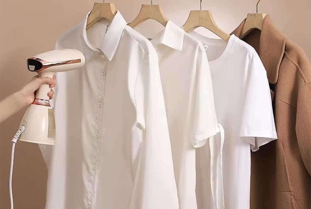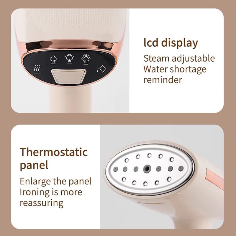 The water tank holds enough for multiple garments, with a visual indicator showing current water levels clearly.