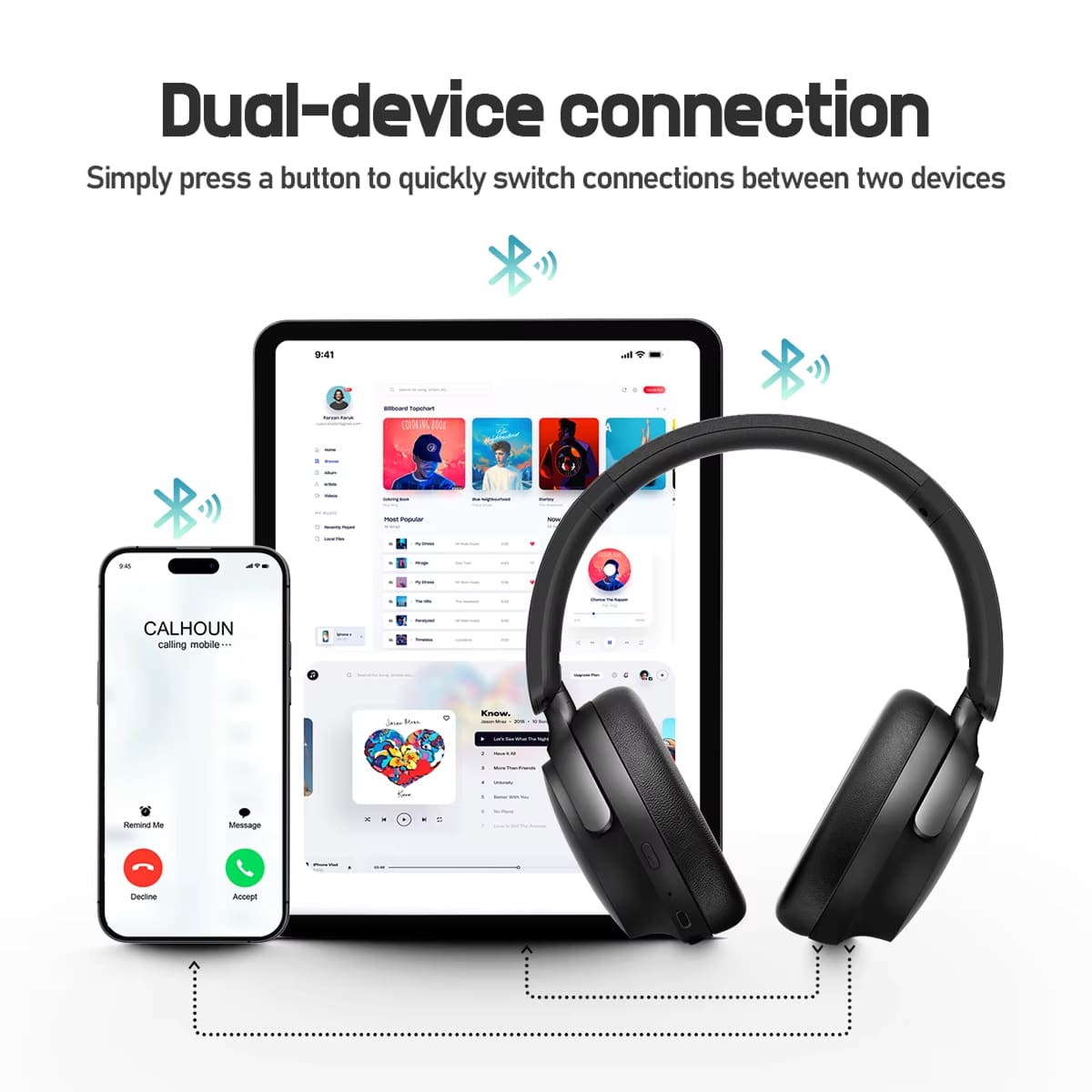 ZenMutex headphones support dual-device connection via Bluetooth 5.4, allowing you to seamlessly switch between your phone and laptop without manual re-pairing for ultimate convenience and flexibility.
